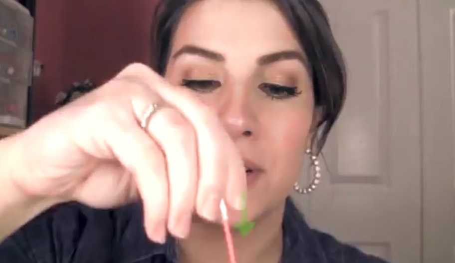 Ватная палочка смачивается в средстве