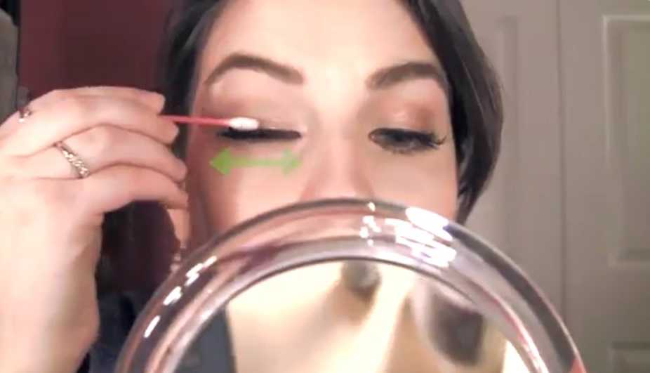 Шаг 4. Удаляется клей. Для этого тампоном нужно протереть область крепления ресниц движениями, направленными от внешнего угла глаза ко внутреннему.