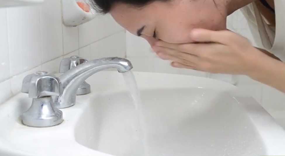 Прежде всего следует умыться специальной жидкостью, не сушащей кожу