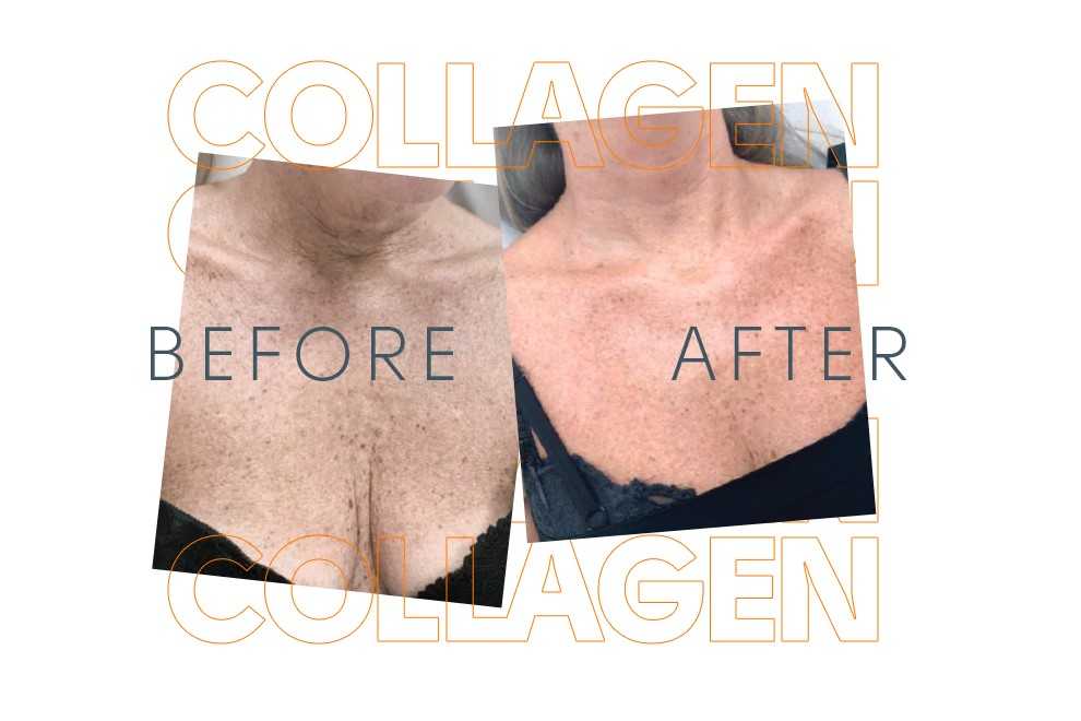 Кроме того, коллаген обеспечивает высокие результаты в лечении гиперпигментации, которой часто подвержена зона шеи и декольте. Улучшается цвет кожи, выравнивается тон. Коллаген влияет на васкулярную систему, воздействуя на патологически измененные меланоциты, инициирует клеточную регенерацию и производство меланина в нормальном режиме. Таким образом, это одновременно стимуляция клеточного ответа и предотвращение апоптоза.