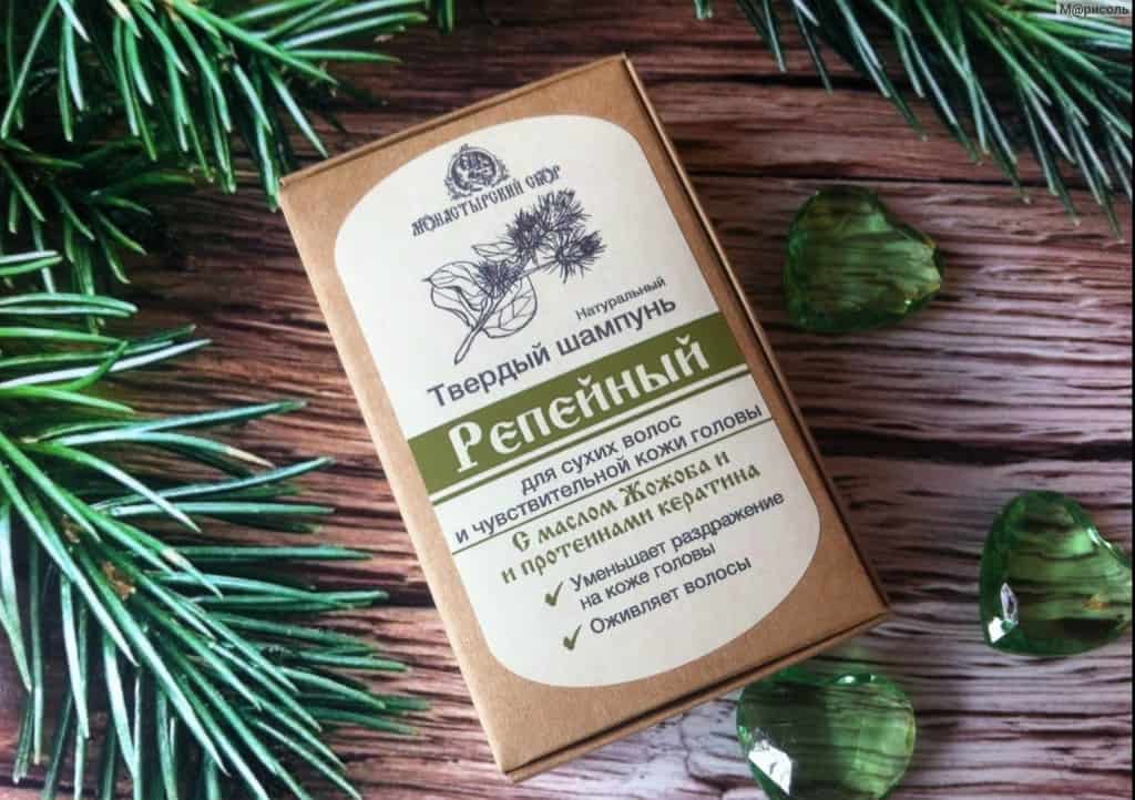 Репейный твердый шампунь отлично действует на вьющиеся сухие волосы. Подходит для кожи, склонной к шелушению, так как средство улучшает жировой обмен на клеточном уровне . Удерживая влагу в волосах, восстанавливает эластичность и защищает от высушивания. Состав абсолютно натурален и безопасен. Выглядит как бежевый брусок с ароматным шлейфом эфирных масел лаванды и чайного дерева. Обладает противовоспалительным действием. Стимулируют рост новых волос и уплотняет их стержень.