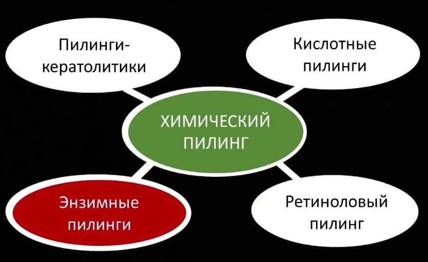 Справиться с проблемой удастся с помощью эксфолиации (другое название пилинга). Как и все подобные процедуры, энзимная удаляет мертвые ткани. Главным компонентом выступает фермент, подходящий для следующих типов кожи: