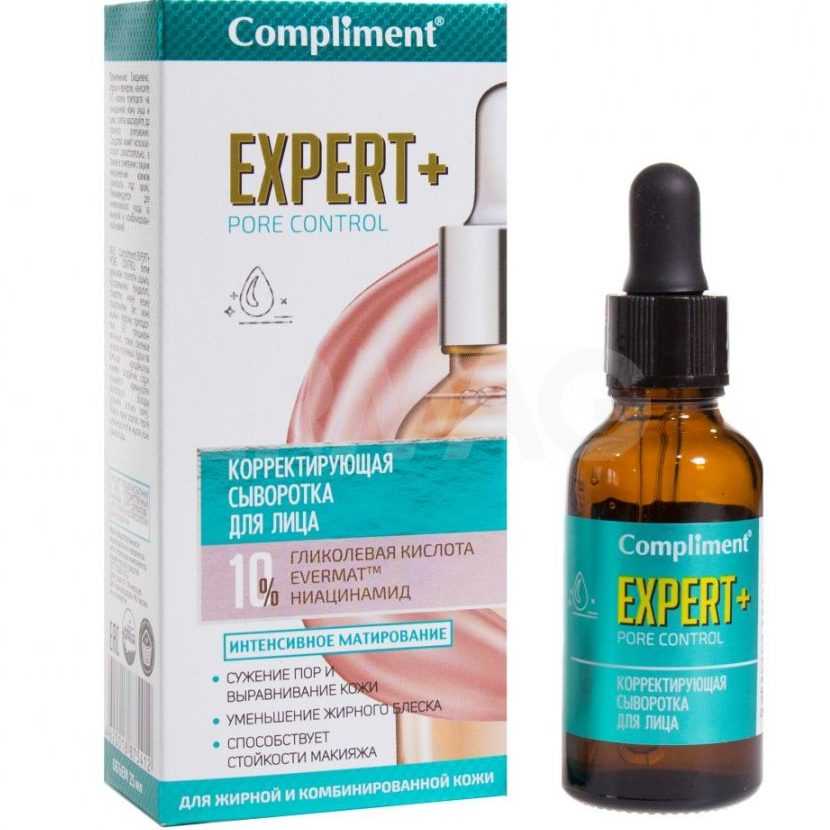 Compliment Expert + Pore Control предназначен для интенсивного матирования жирной и комбинированной кожи. Концентрат помогает решить несколько задач одновременно: