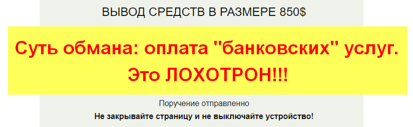 зарабатывает на услугах, которые якобы нужны для вывода средств. После