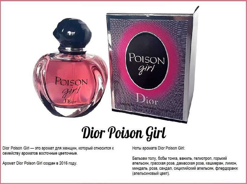 Poison Dior Girl – цветочно-пряный эликсир с теплым ванильным шлейфом. Шикарная дамасская роза и горький апельсин создают томную шикарную композицию. Парфюмерная легенда для чарующих и эффектных женщин.