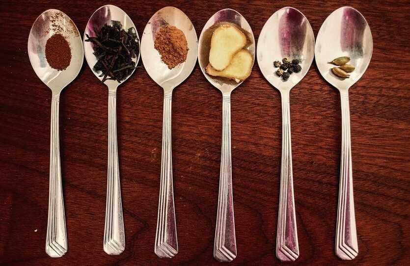 Даже если в смеси есть сушеный имбирь, индусы добавят свежий корень при заваривании чая. Для придания пикантности кладут шафран, бадьян, корень солодки, лепестки роз и другие душистые пряности.