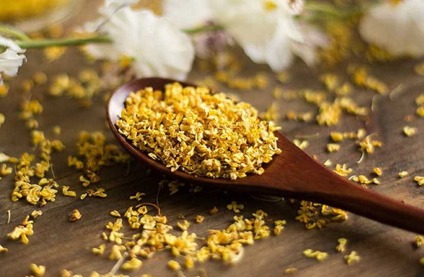 Повторная сушка и поджаривание закрепляют успех. Листья хранят вместе с цветами, что позволяет им пропитаться цветочно-фруктовым ароматом и при заварке продемонстрировать его. Османтусовый чай чрезвычайно полезен. Он: