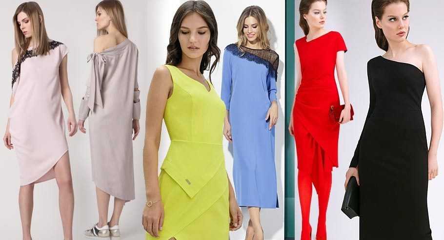 Ассиметричный крой одежды также придаст фигуре более утонченный вид. Примеры деталей одежды и сами наряды видны на фото.