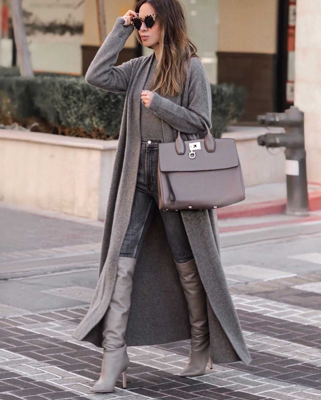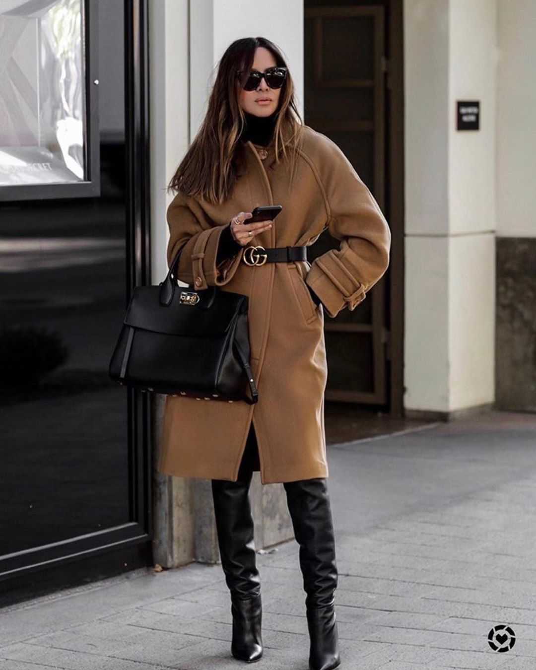 Когда смотришь на сапоги, которые не обрываются на границе с пальто, кажется что ноги бесконечные. А еще они стройные и красивые. Так что обязательно используйте данный прием.