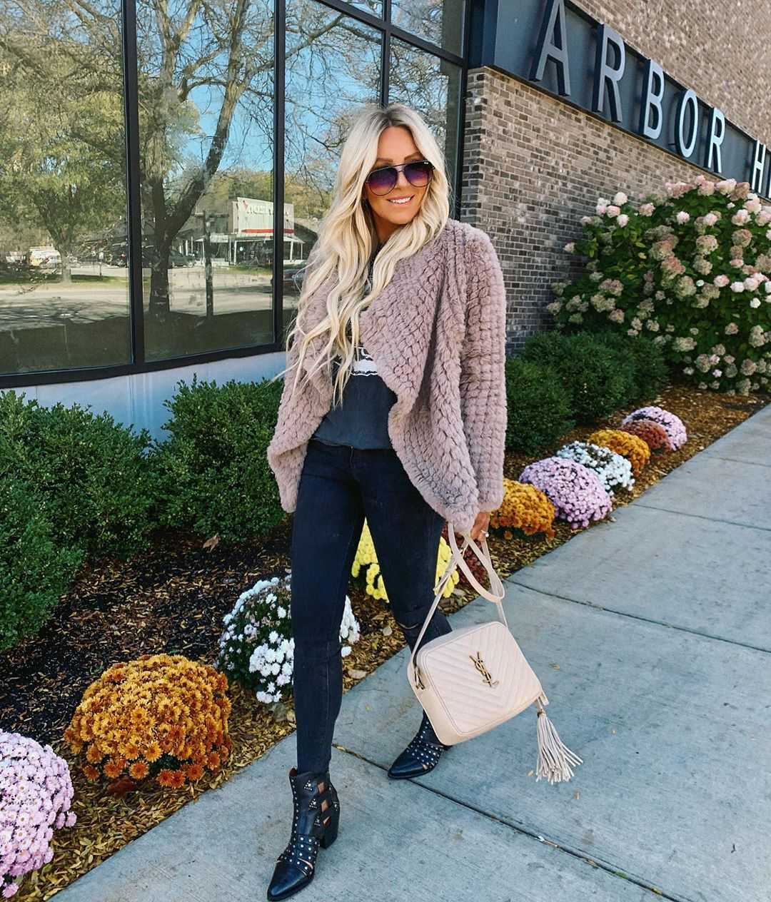 Старайтесь не выбирать объемные свитера, которые вас сильно закроют и превратят в матрешку. Это могут быть стильные кардиганы, накидки. Которые позволят демонстрировать подтянутые участки фигуры. В этом случае как раз подойдут зауженные брюки скинни с модными ботинками.