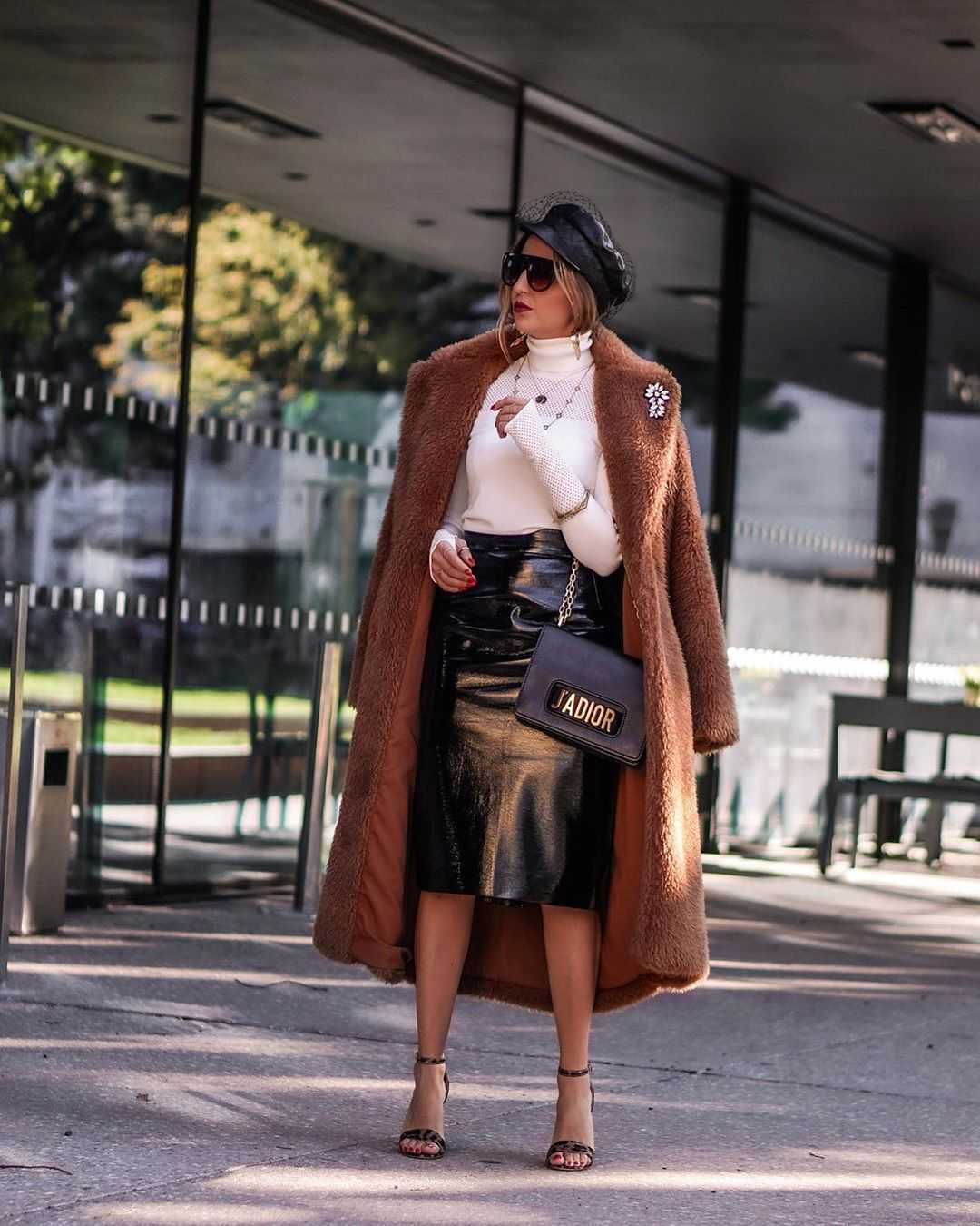 Шубы из искусственного меха шикарно сочетаются с узкими юбками, трикотажными платьями в обтяжку. Также не лишним будет модный брючный костюм со свободной дубленкой, пальто.