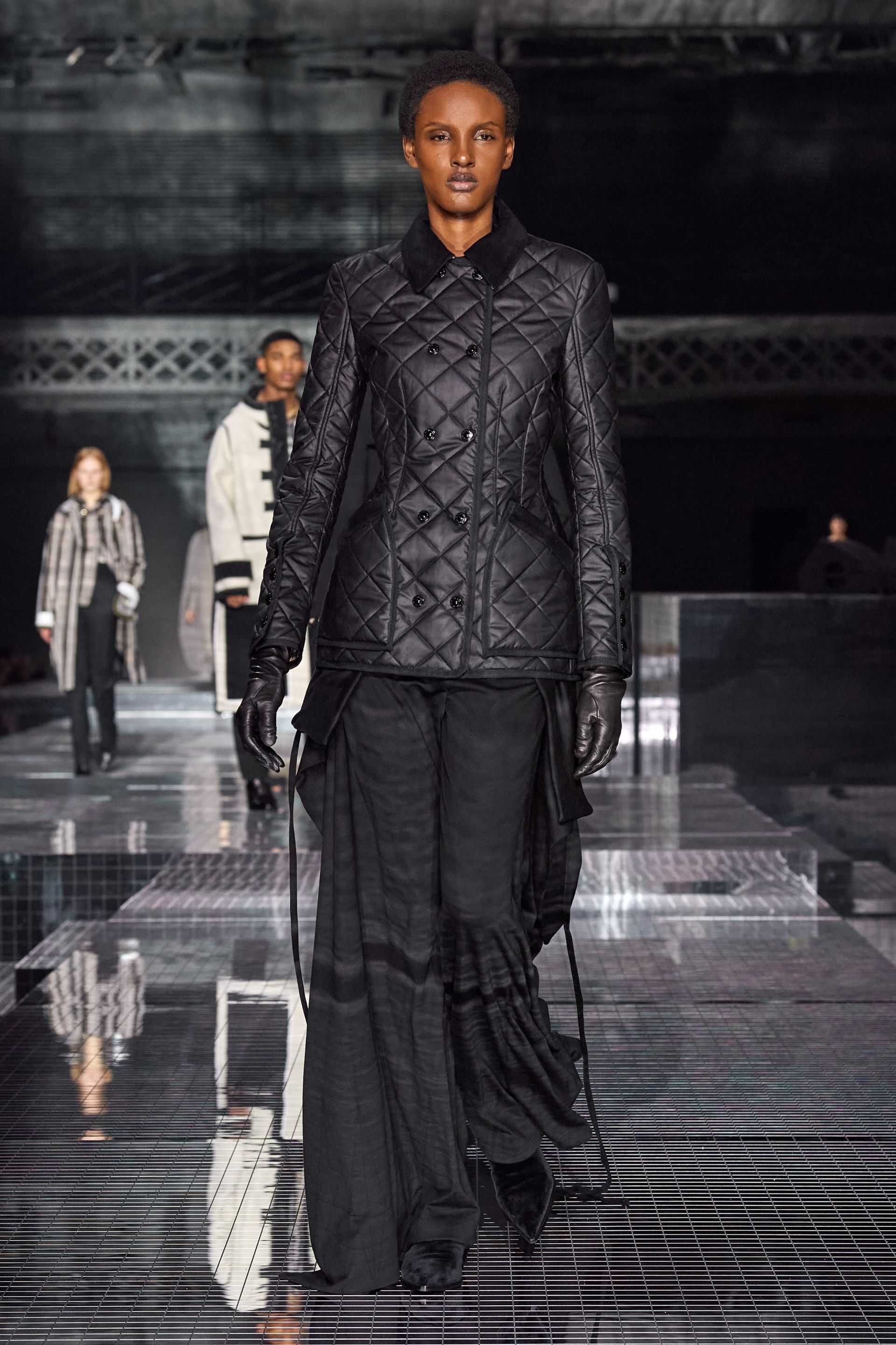 В Burberry пошли по пути наименьшего сопротивления и показали приталенную стеганую куртку в черном цвете. Акцентными деталями в верхней одежде стали большие накладные карманы и воротник – теперь можно не думать о шарфе и просто носить с такой курткой водолазку или свитер с высоким горлом. Идеальным дуэтом для стеганой куртки станет юбка длины миди А-силуэта или яркая кожаная юбка-карандаш. И не забудьте про аксессуары – перчатки в этом сезоне не только модно, но и безопасно.