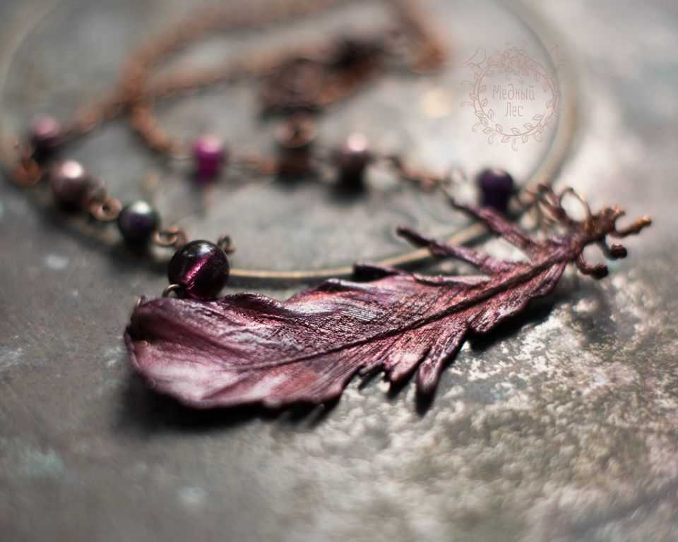 Колье с пером фиолетовое. Автор Юлианна Волкова.