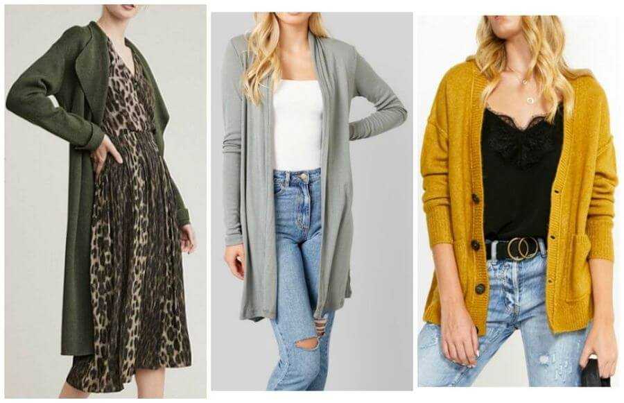 - Длинные кардиганы — длина варьируется от середины бедра до середины голени.