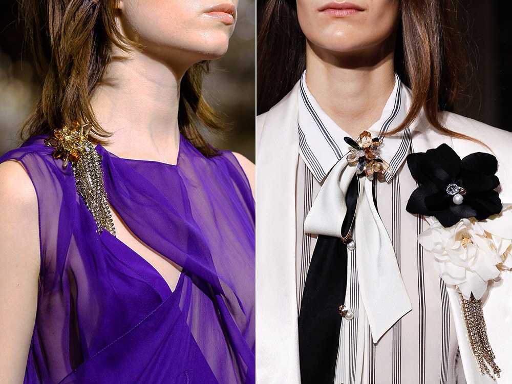Очередной роскошный и модный аксессуар, но почему-то многими забытый. А ведь брошью часто можно заменить ожерелье и колье, которые подходят не ко всем нарядам. В этом году броши снова набирают популярность, но в отличие от былых времен, когда принято было их закалывать в определенном месте, то сегодня нет абсолютно никаких ограничений. Сегодня брошь везде уместна: на шляпах, шарфах, воротничках, сумках и даже на изящной обуви. А носить такое украшение можно как в единственном варианте, так и сразу несколько, прикрепляя в самых необычных местах.
