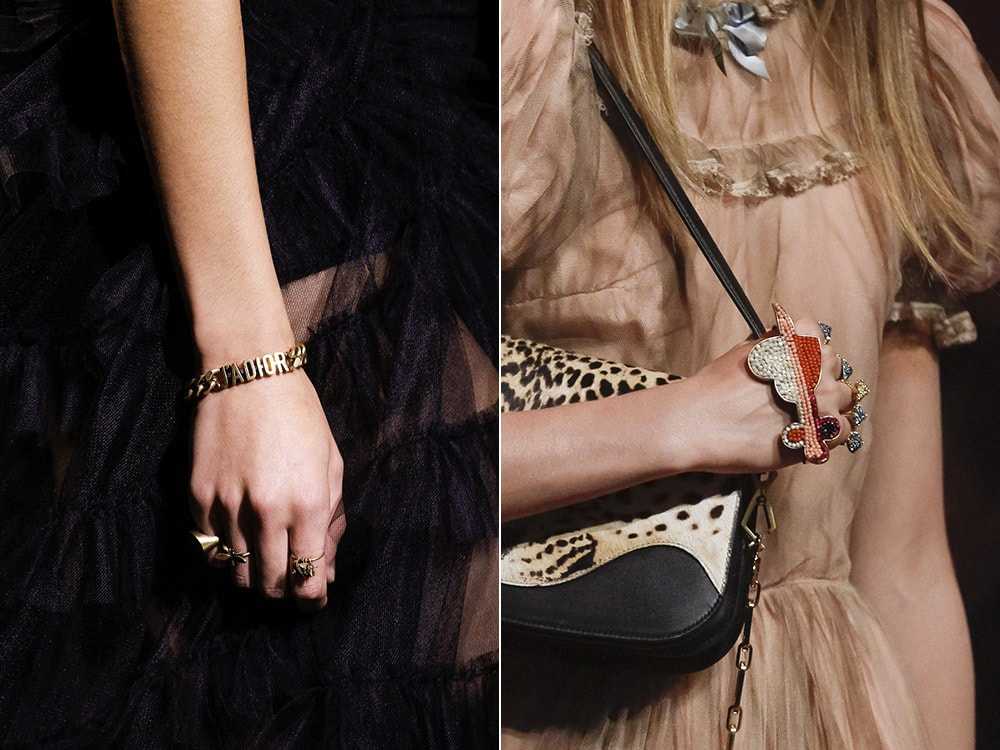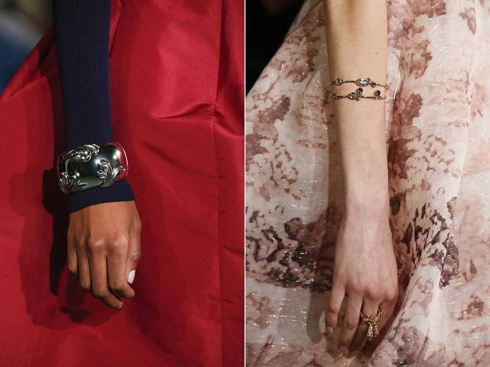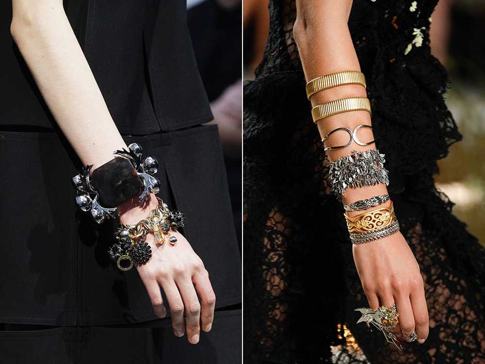 Многие бренды представили на подиумах разнообразные браслеты. Согласно актуальным тенденциям ведущих домов моды в тренде изделия, выполненные из: