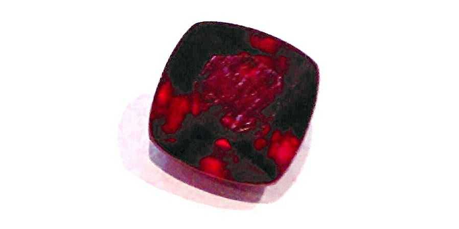 Рубин — драгоценный камень, принадлежит разновидностям корунда. Камень твердый, преобладающий цвет красный, окраска минерала имеет неравномерный оттенок.