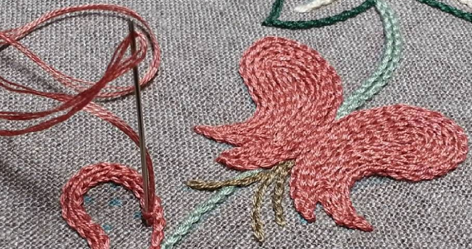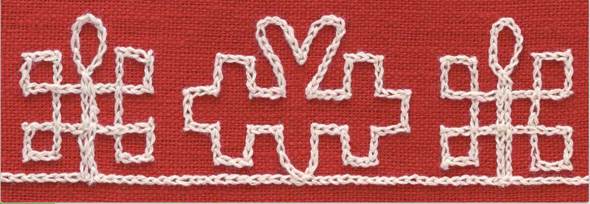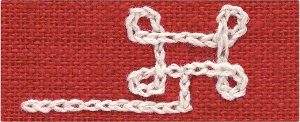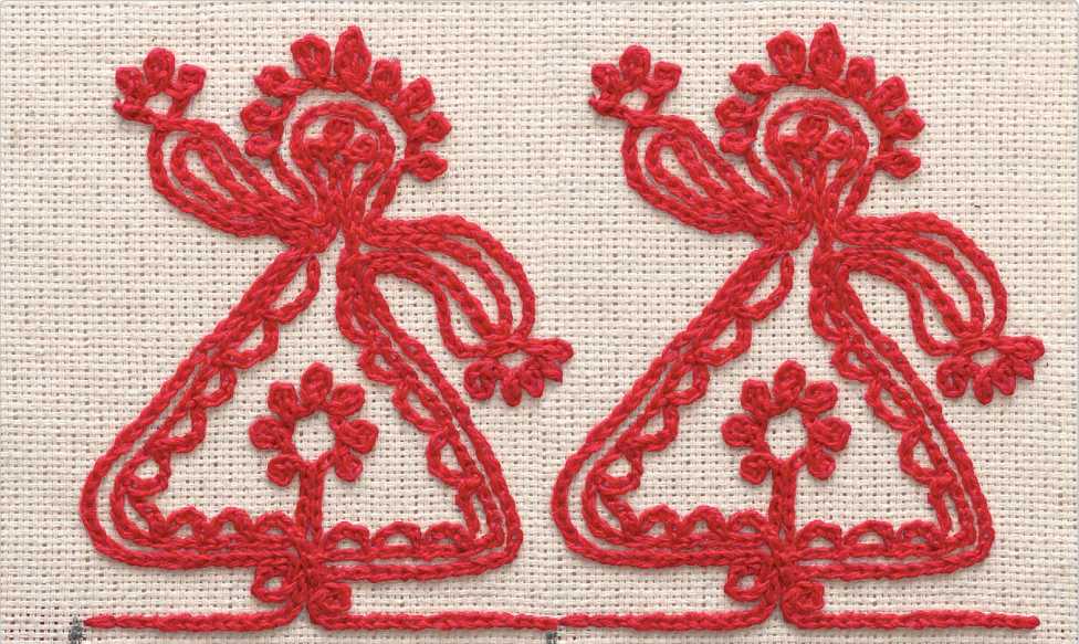 Особенность этой техники — непрерывность шва. Весь рисунок вышивают на одном дыхании, делая повороты, петли и т.д. по ходу вышивки.