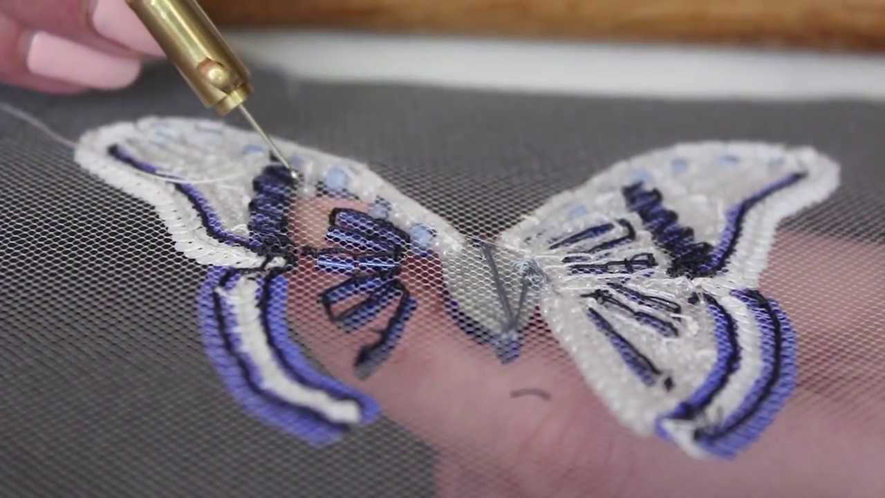 Как правило, вышивают люневильским крючком на прозрачных и тонких тканях: батисте, шелке, муслине, а также на более грубых — бархате, полотне. Особенно изысканно выглядит вышивка тамбурным швом на тоненьких тканях или сетке, и напоминает дорогое кружево.