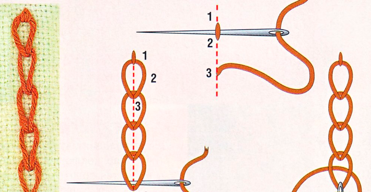 - В конце вышивки исп шов-закрепка, чтобы цепочка не распустилась.