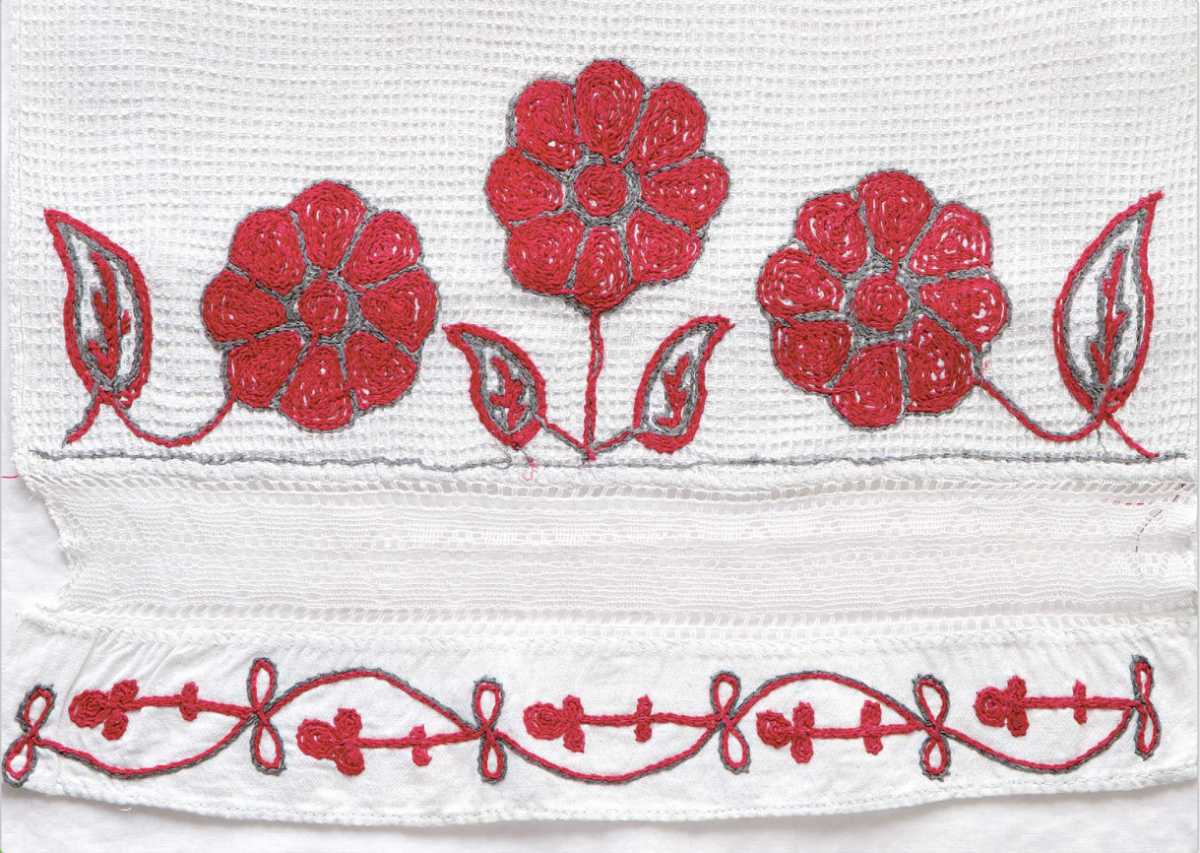 Еще один пример вышивки тамбурным швом на полотенце.