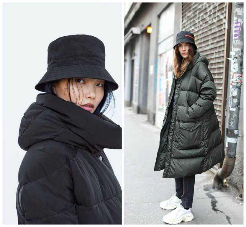 Устаревшие варианты дутых курток: с поясом и а-ля платье — однозначно не подходят. Трендовые оверсайз и прямые пуховики будут сочетаться практически с любой панамкой.