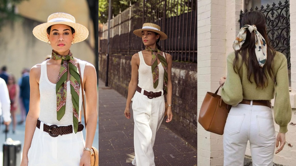 Для шейного шелкового или атласного платка летом 2020 можно найти несколько применений: носить его на запястье в качестве браслета, на талии – вместо пояса, вплетать в косы, как украшение для волос или повязывать на голову, оставляя под подбородком небольшой романтичный бант в стиле Одри Хепберн и Грейс Келли. Однотонные модели лучше приберечь для прохладной осени, а сейчас сделать ставку на цвет и принты: цветочный, тропический и анималистичный. Идеальной парой к утонченным платкам из легкой ткани будут солнцезащитные очки в крупной оправе – круглой и квадратной, украшенной стразами, кристаллами или тонкой цепью, а завершить образ утонченной леди помогут туфли или босоножки на невысоком каблуке, плетеная сумка и пара браслетов.