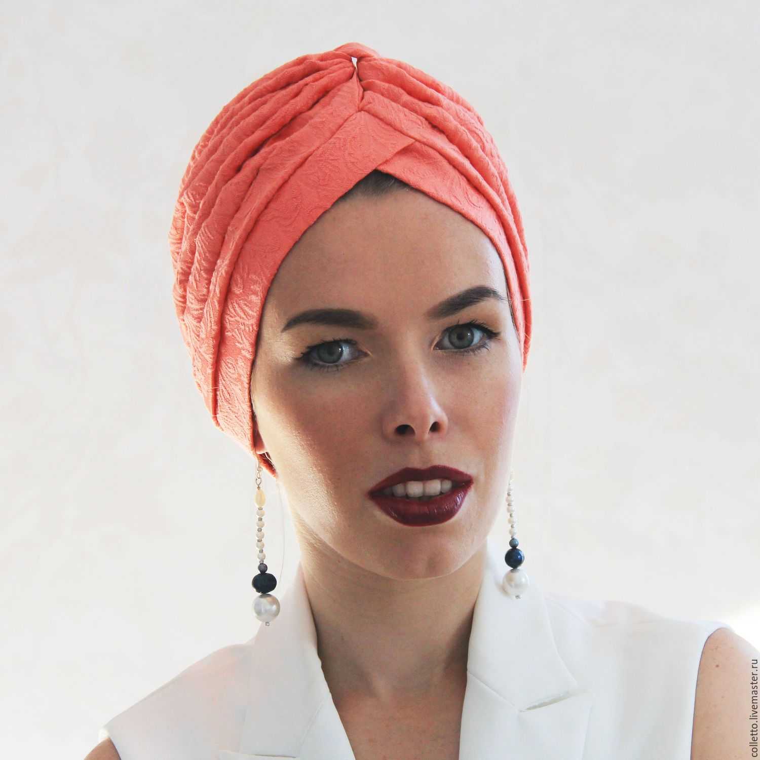 Женщина в тюрбане обращает на себя внимание окружающих, она не похожа на других. Носить такой головной убор нужно с крупными серьгами, бусами из натуральных камней