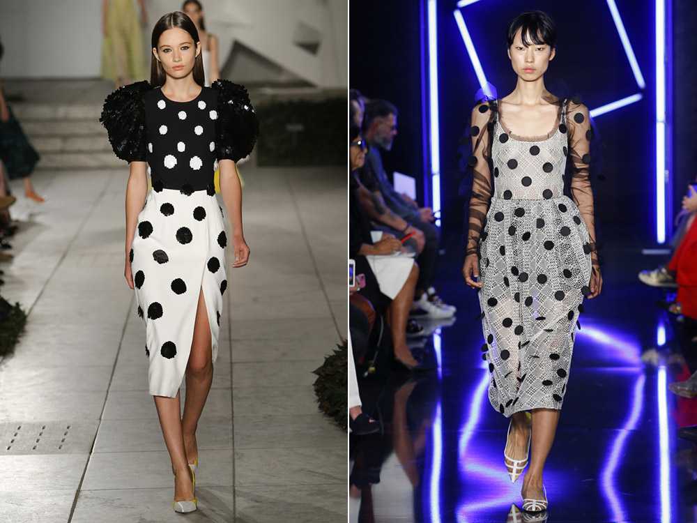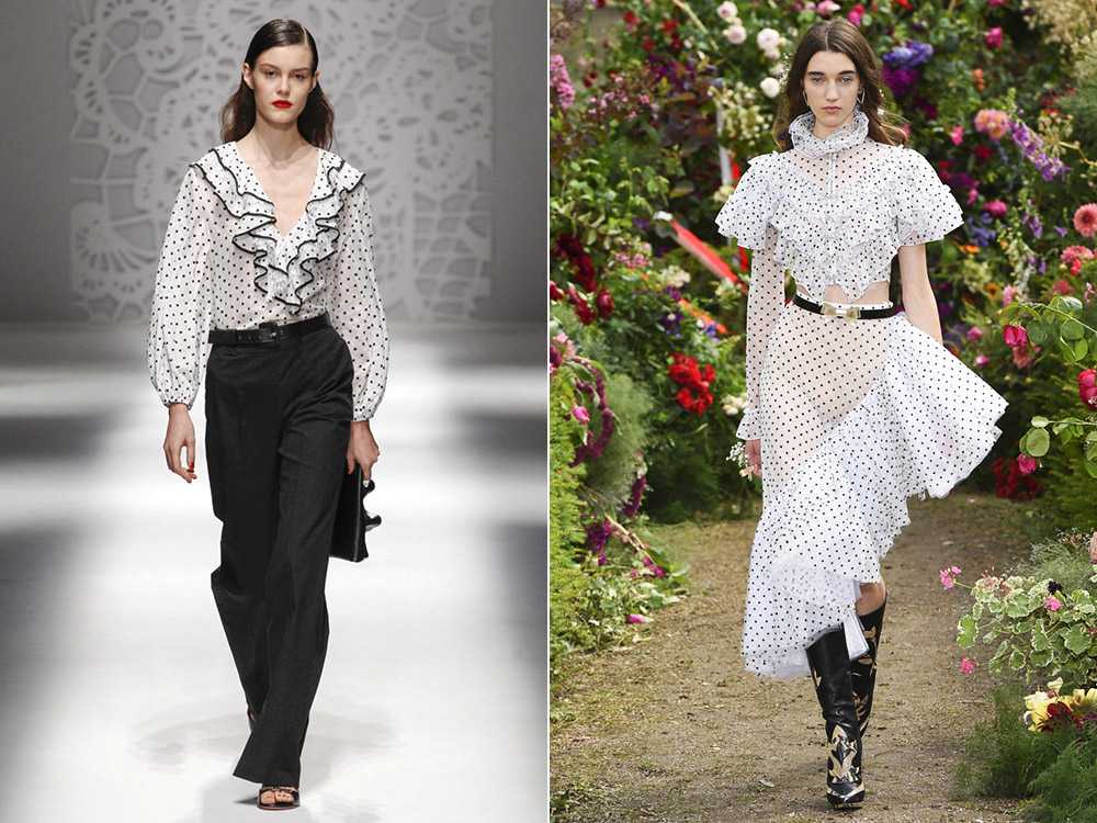 В сезоне весна-лето 2019 в очередной раз в моду входит принт «горох». Правда, дизайнеры не стали экспериментировать с формой и цветом, остановились на классическом черно-белом сочетании. Меняться может только размер самих горошинок.