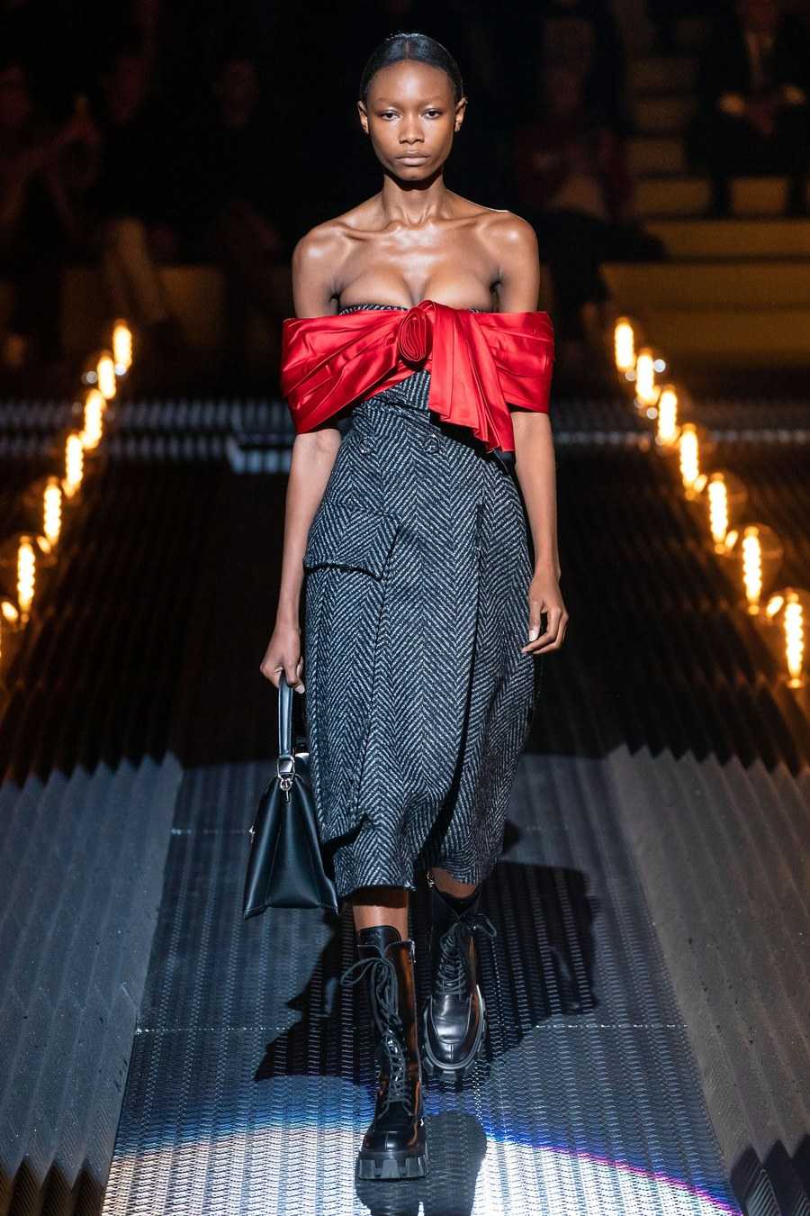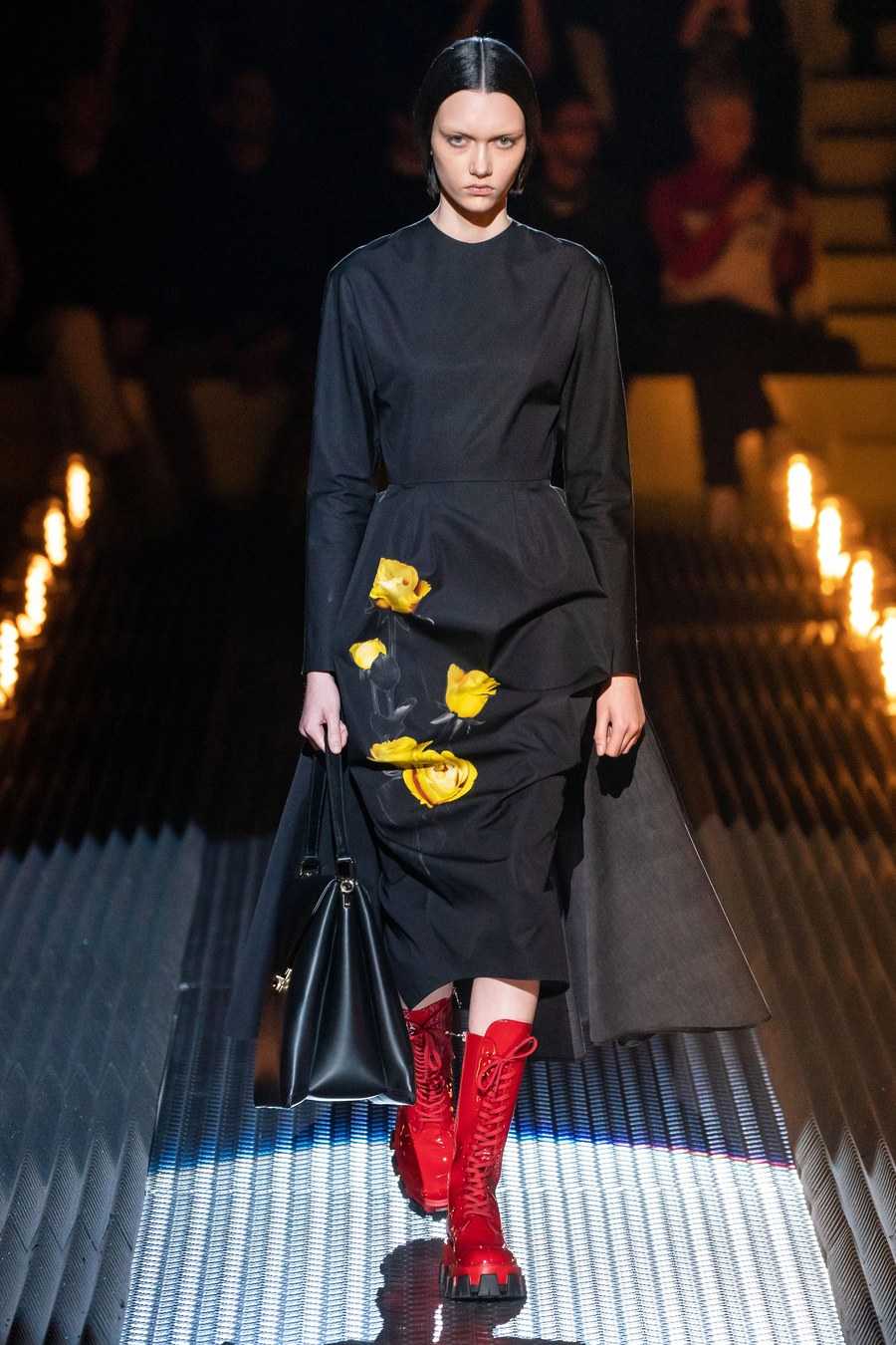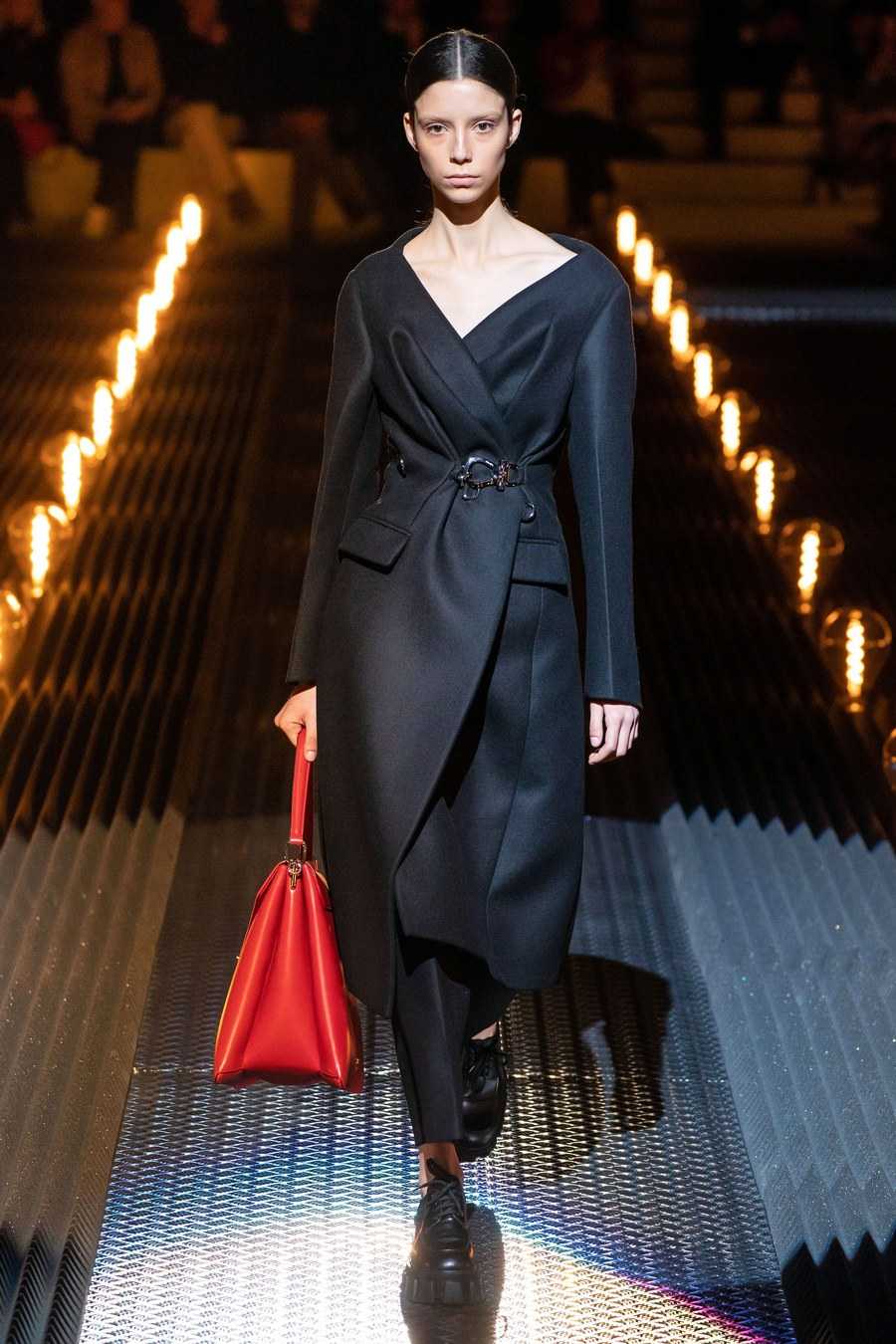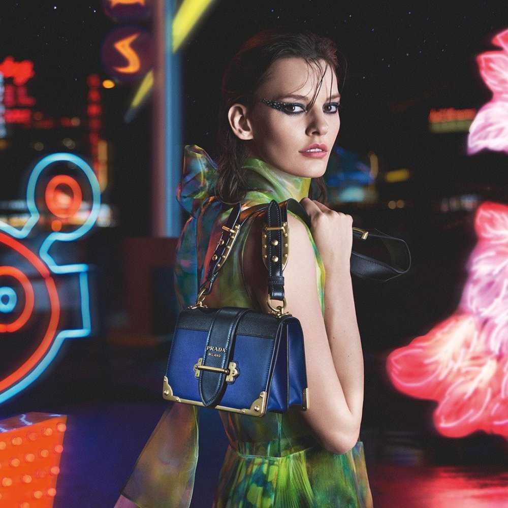 Коллекции бренда часто включают в себя черные, белые и бежевые цвета, а также футуристические формы и синтетические ткани. Это Miuccia Prada, которая начала использовать военный качественный нейлон для производства сумок, чтобы революционизировать то, как мы смотрим на роскошь.