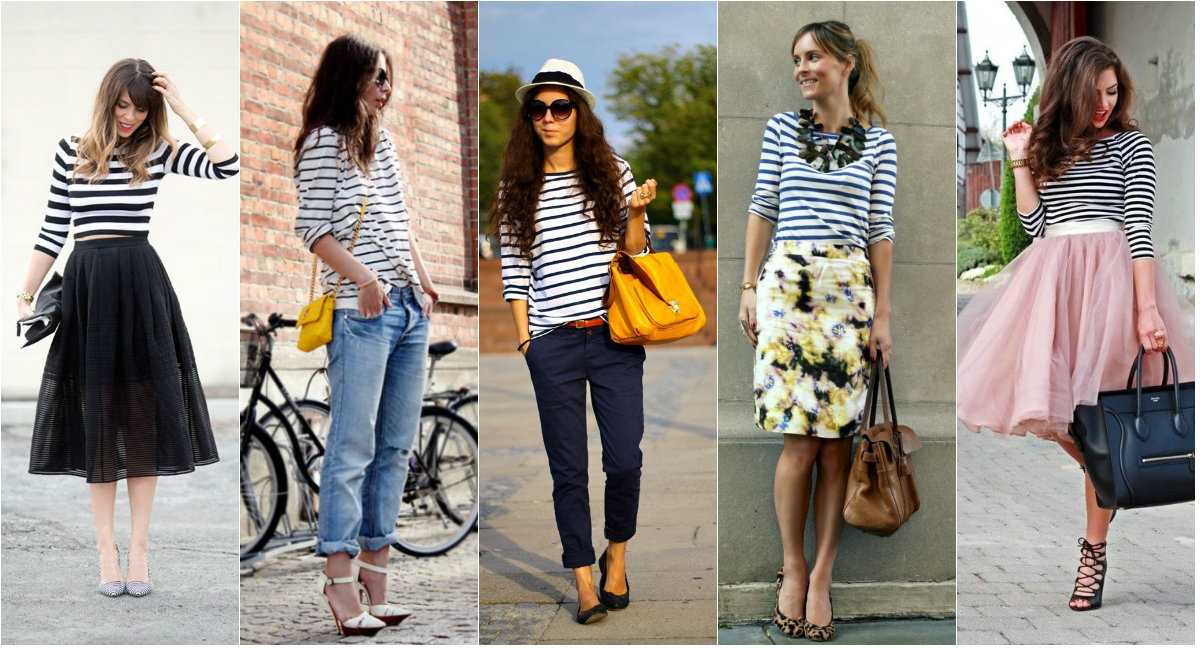 Мы подобрали специально для вас универсальные варианты сочетания тельняшек, которые успешно можно реализовывать продумывая свои образы на каждый день, на работу и даже нарядные.