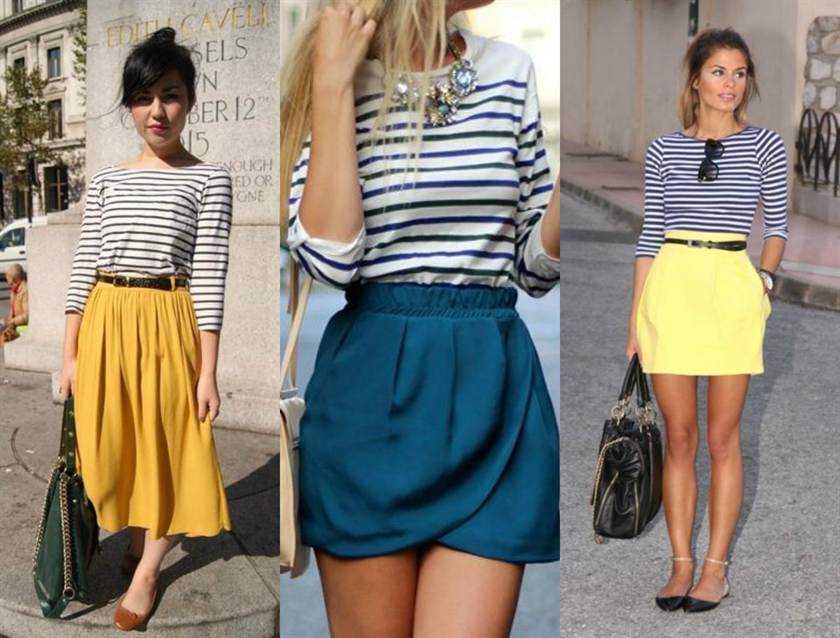 При помощи этих двух вещиц можно составить отличный комплект в морском стиле, который сейчас так популярен. А можно и достаточно элегантный образ получить, если выбрать юбку длины миди.