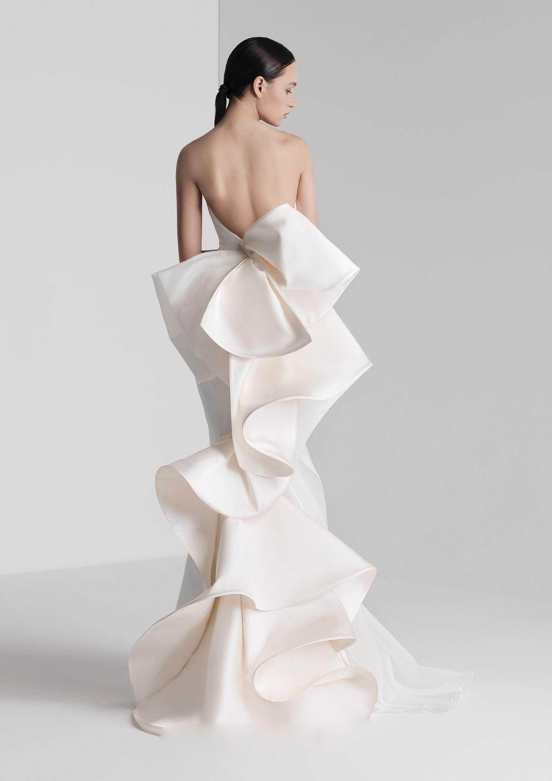 — бант на спине — еще один изящный ход. Особенно он подходит невестам, которые хотели бы добавить в свой свадебный наряд 2020 необычных элементов