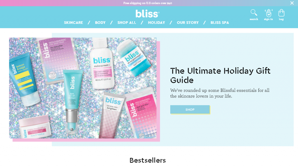 Дизайн магазина: сочный UX. Используя яркие цвета, веселую графику и даже gif-анимацию, сайт поощряет вас исследовать уходовые тренды, заниматься собой и, конечно, покупать.