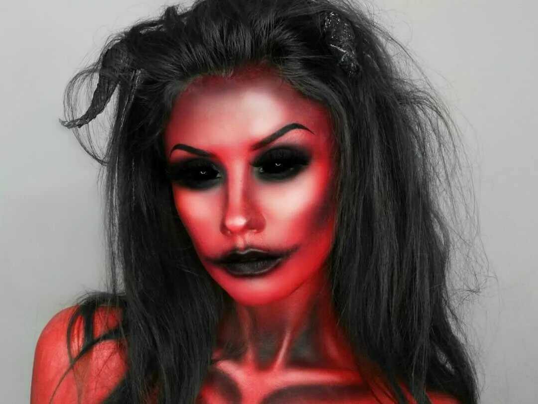 Дьявол – само по себе уже слово нечистое. Сразу представляется яркий огонь, кровь, тьма и подвал. Женщина-дьявол же должна создавать тот же образ, то есть она должна быть уверенной, дерзкой и зловещей. Чтобы пугать людей, необходимо еще и создать такой макияж. Тон лица может быть любым, желательно нарисовать скулы.