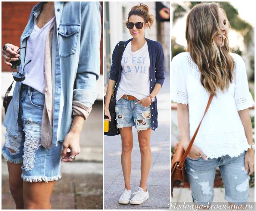 Джинсовые шорты уместны для любого образа – будь то привычный стиль casual или выход на коктейльную вечеринку. Модные коллекции представляют всем леди возможность примерять самые дерзкие образы, рваные, отрезанные очень коротко, с потертостями, «вывернутыми» карманами и прочими штрихами.