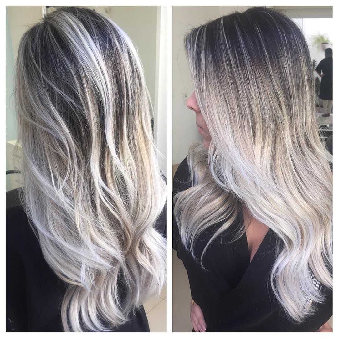 Седой. Смелый вариант техники балаяж, который в основном выбирают молодые девушки и дамы в возрасте. Он требует тщательного и кропотливого обесцвечивания, поэтому может ухудшить состояние локонов.