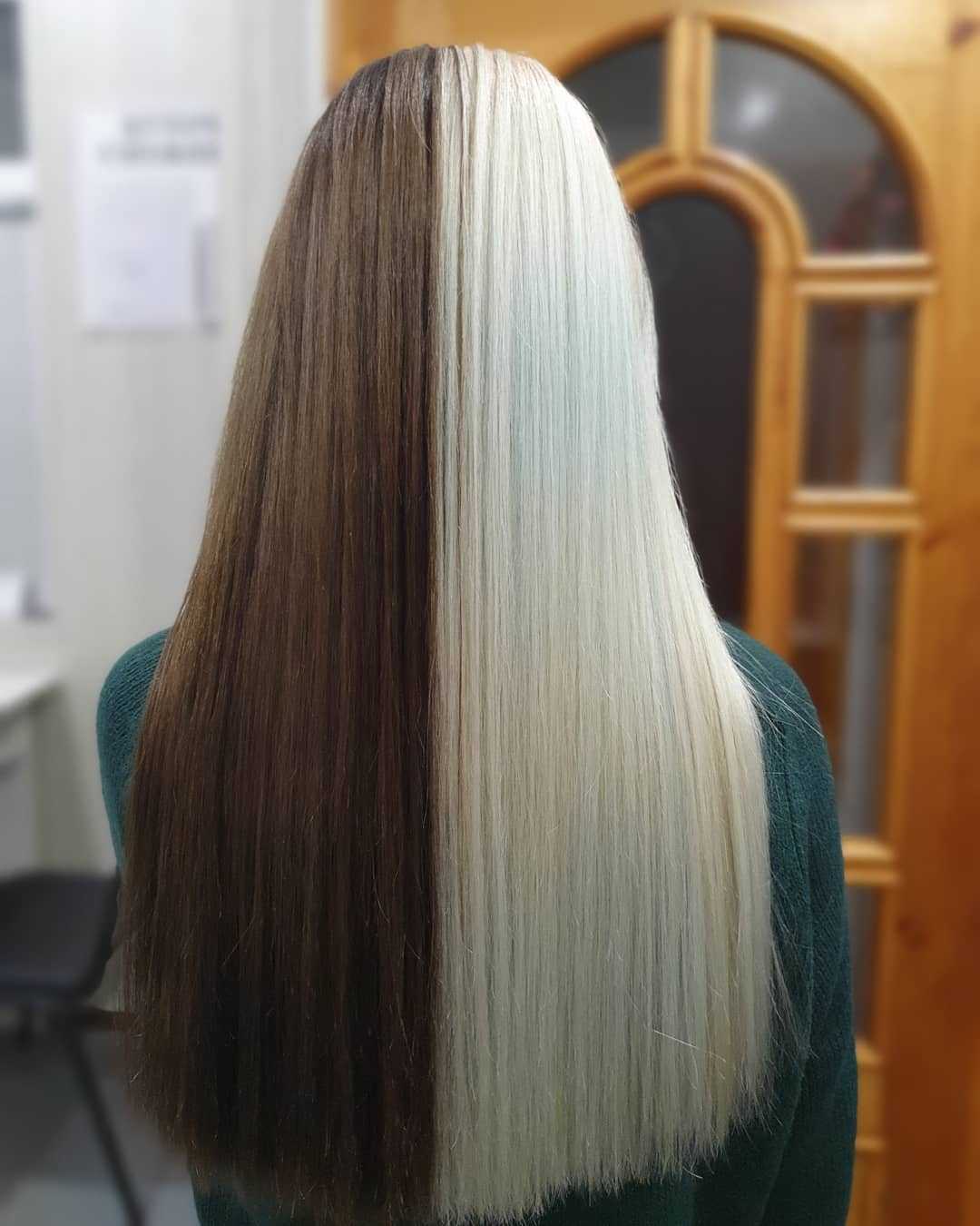 Радикальное перевоплощение можно получить при вертикальном двухцветном окрашивании либо в оттенках русого, либо в сочетании с другим цветом.