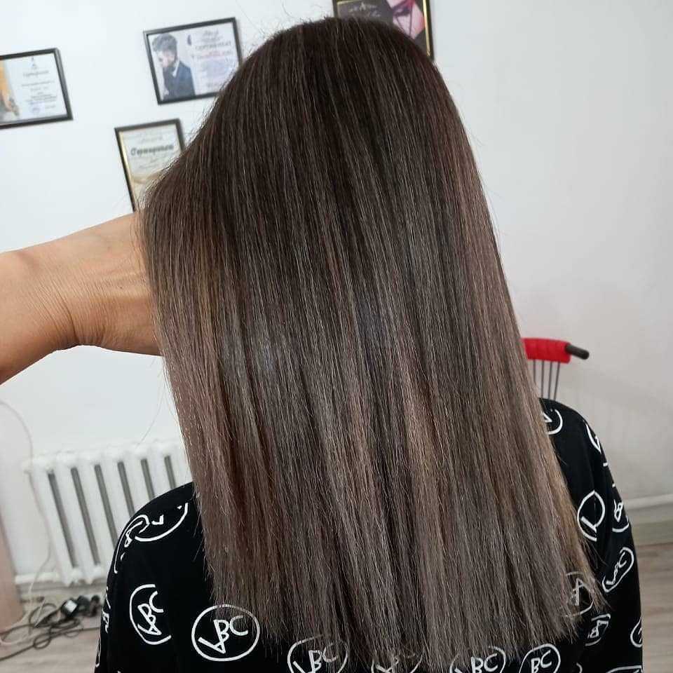 Холодный пепельно-русый оттенок отлично подойдёт для девушек с русым и темно- русым цветом волос. Часто является не доминирующим, а дополнительным в окрашивании, придающим ту самую ключевую нотку, которая расставляет акценты.